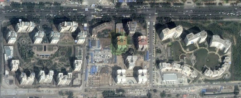 … der leicht angegrünte Block ist mein Block. Chaoyang Park, Südeingang, Gebäude 6, Stockwerk 25… – good view. Bei mir weiterhin alles hao, hen hao. Peace. Kop ***